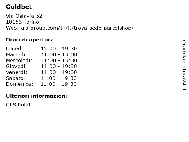1 Goldbet (distanza: 4,65 km) Via Duchessa Jolanda 5A, 10138 Torino agenzia di scommesse, casino, goldbet, ippica, live, lottomatica, online, poker, scommesse, slot, virtual, vlt 2 Goldbet (distanza: 5,10 km) Corso Filippo Turati 39, 10128 Torino agenzia di scommesse, casino, goldbet, ippica, live, lottomatica, online, poker, scommesse, slot, virtual, vlt 3 Goldbet (distanza: 6,45 km) Via Domodossola 63, 10145 Torino agenzia di scommesse, casino, goldbet, ippica, live, lottomatica, online, poker, scommesse, slot, virtual, vlt 4 Goldbet (distanza: 6,53 km) Via Monginevro 84, 10141 Torino agenzia di scommesse, casino, goldbet, ippica, live, lottomatica, online, poker, scommesse, slot, virtual, vlt 5 Goldbet (distanza: 7,08 km) Via Rosario di Santa Fč 35, 10134 Torino agenzia di scommesse, casino, goldbet, ippica, live, lottomatica, online, poker, scommesse, slot, virtual, vlt 6 Goldbet (distanza: 8,12 km) Via Giuseppe Verdi 4/I, 10036 Settimo Torinese agenzia di scommesse, casino, goldbet, ippica, live, lottomatica, online, poker, scommesse, slot, virtual, vlt  |