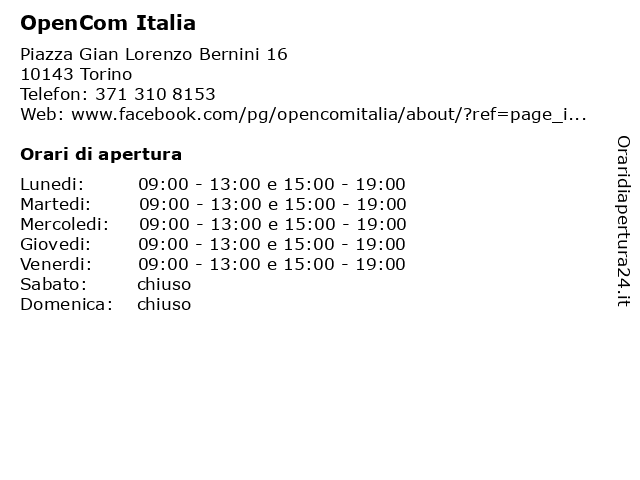 | Venerdi | 09:00-13:00 e 15:00-19:00 |