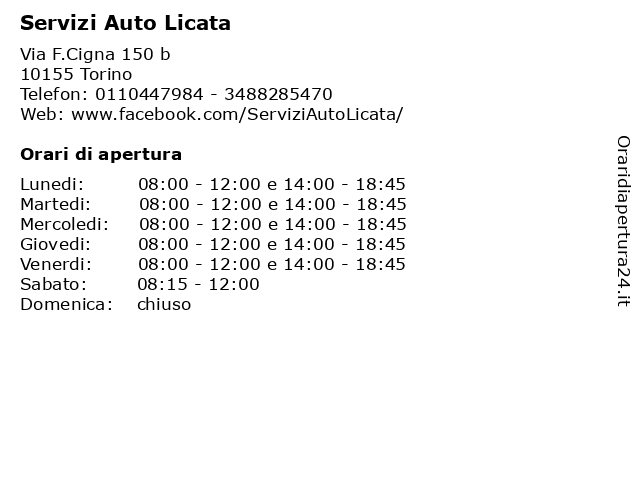 Lunedi | 08:00-12:00 e 14:00-18:45 |