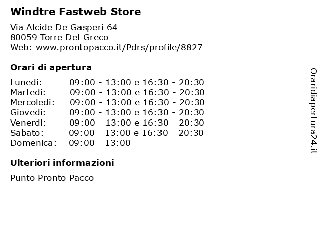| Sabato | 09:00-13:00 e 16:30-20:30 |