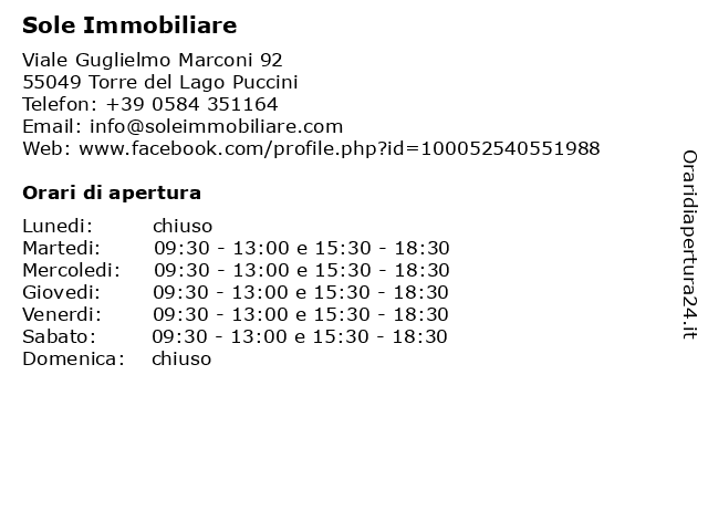 | Martedi | 09:30-13:00 e 15:30-18:30 |