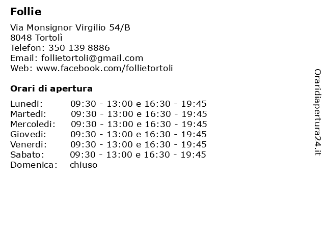| Lunedi | 09:30-13:00 e 16:30-19:45 |