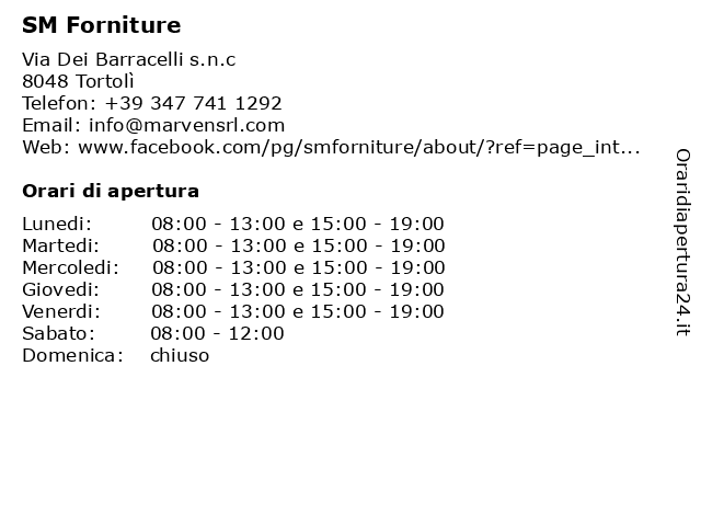 | Lunedi | 08:00-13:00 e 15:00-19:00 |