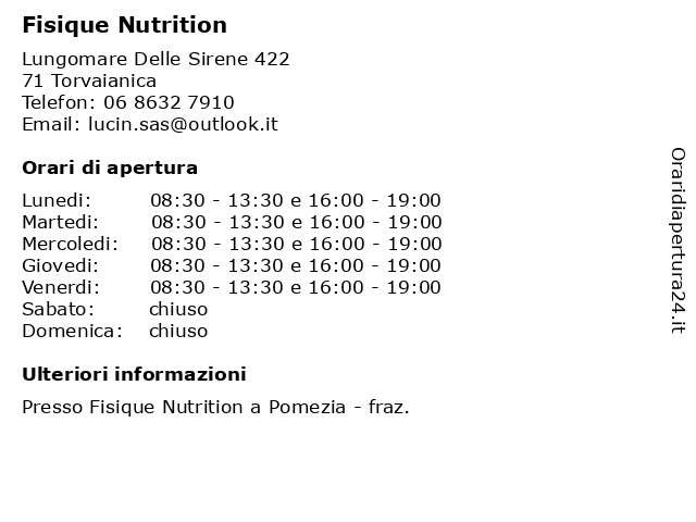 | Venerdi | 08:30-13:30 e 16:00-19:00 |