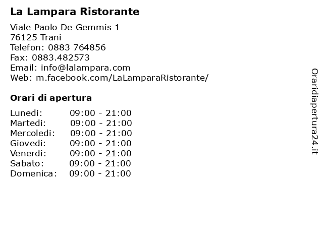 | Sabato | 09:00-21:00 |