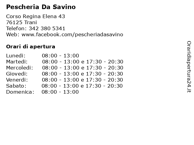 | Sabato | 08:00-13:00 e 17:30-20:30 |