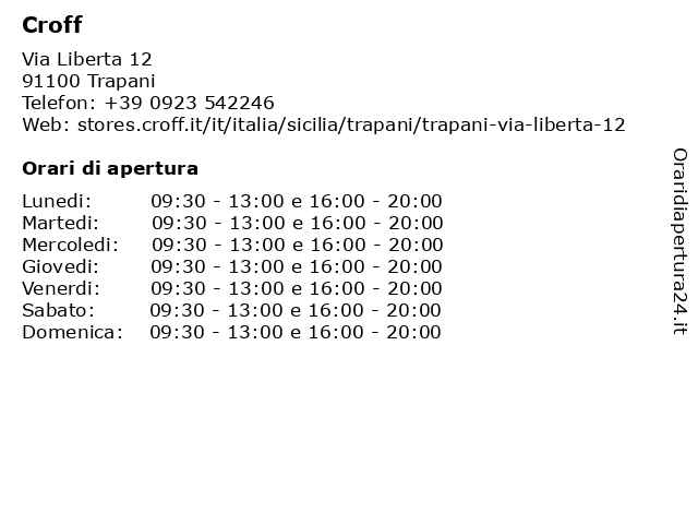 | Sabato | 09:30-13:00 e 16:00-20:00 |