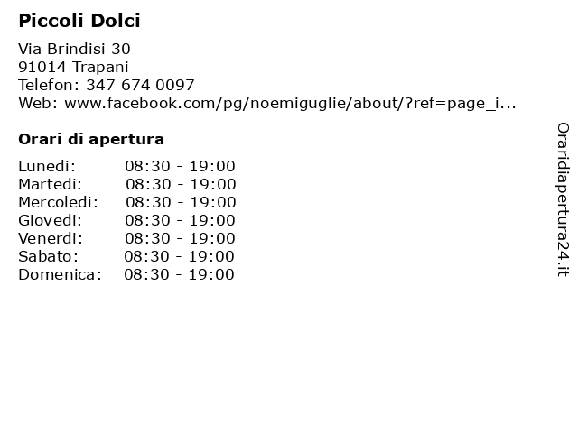 | Sabato | 08:30-19:00 |