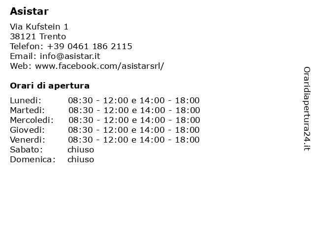 | Lunedi | 08:30-12:00 e 14:00-18:00 |