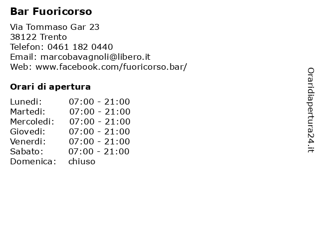 | Venerdi | 07:00-21:00 |