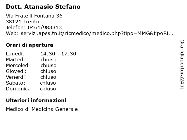 1 Dott. Atanasio Stefano (distanza: 0,49 km) Largo Nazario Sauro 8, 38121 Trento (atanasio, ambulatorio, atanasio, dott., generico, gianfranco, gianfranco), medici di base, medici generici, medico, stefano 2 Commercialista Emma Stefano (distanza: 0,20 km) Via Oberziner 11, 38121 Trento (TN) commercialista, commercialisti, emma, fatture, pratiche, stefano, uffici 3 CGIL Confederazione Generale Italiana del Lavoro (distanza: 0,29 km) Via Trento Trieste 19, 47030 Sogliano al Rubicone cgil, confederazione, del, generale, italiana, lavoratori, lavoro, organizzazione, pensionati, sindacato, tutela 4 Cilli's Pizza (distanza: 0,29 km) Via Gaspare Crivelli 15, 38121 Trento catering, cilli, cilli's, di, pizza, ristoranti, stefano 5 Agenzia Immobiliare Avisiana Sas Di Baiocchi Stefano & c. (distanza: 0,33 km) Via Francesco Guardi 2, 38122 Trento agenzia, avisiana, baiocchi, gestione, immob, immobiliare, industriali, locaz, stefano 6 Archivio Notarile Distrettuale (distanza: 0,40 km) Corso Buonarroti 53, 38122 Trento archivio, archivio notarile, bilanci, carta etica, circoscrizioni, comunali, comune, concorsi, consiglio, di, direttiva generale gestionale, distrettuale, gare d'appalto, giudice di pace, giusta, giustizia, ministero, modulistica, notarile, servizi |