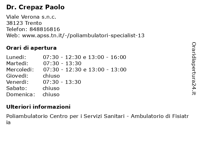 Tag di ricerca per Dr. Crepaz Paolo:di, dr., sanità, assistenza, paolo, ambulatorio, dott., donatella, fisiatria, mattana, cure mediche, servizi ai cittadini, crepaz |
