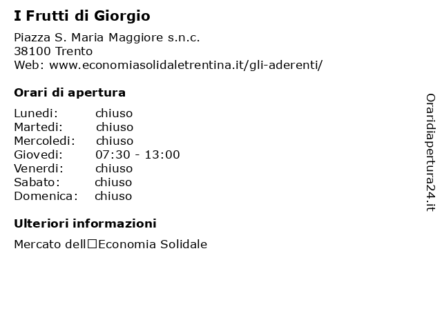 | Giovedi | 07:30-13:00 |