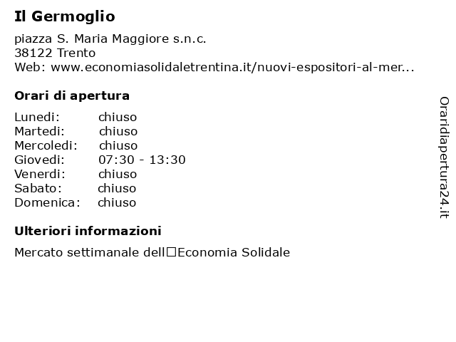 1 Il germoglio (distanza: 8,56 km) Località Fratte 26, 38057 Pergine Valsugana alimenti, biologico, germoglio, il 2 Il Germoglio (distanza: 9,29 km) Strada Statale 47 s.n.c. Località Fratte, 38057 Pergine Valsugana ecologici, germoglio, il, naturali, prodotti biologici, prodotti italiani 3 Pizzeria Il Germoglio (distanza: 48,01 km) Via Santa Rosa 8, 36016 Thiene cena, germoglio, il, mangiare, pizza, pizzeria 4 Il Germoglio (distanza: 50,80 km) Via Dante 12/C, 39100 Bolzano associazione, germoglio, il, protezione civile 5 Il germoglio (distanza: 55,05 km) Brigata Sassari 18, 36063 Marostica alimenti, biologico, germoglio, il 6 Il Germoglio (distanza: 56,05 km) Via Guadagnini 25, 38054 Fiera di Primiero alimenti biologici, bio, biologico, cosmesi, cosmetici, detersivi, germoglio, il, negozio bio, negozio biologico, ortofrutta, prodotti naturali, vegan, vegetariano |