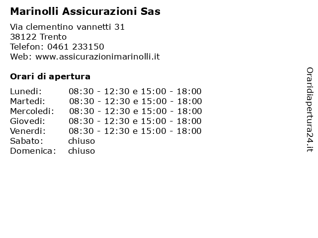 | Lunedi | 08:30-12:30 e 15:00-18:00 |