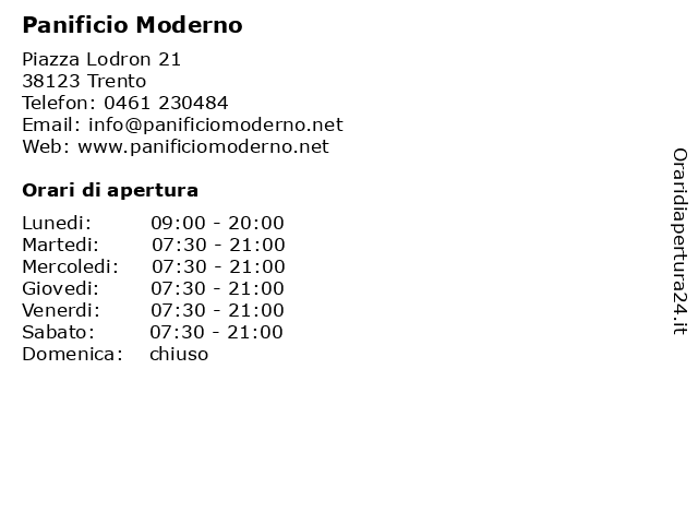 1 Panificio Moderno (distanza: 0,01 km) Piazza Lodron 21, 38122 Trento aziende, botteghe, centri, moderno, negozi, panificio 2 Panificio Lemayr Srl (distanza: 0,40 km) Via Santa Croce 28, 38122 Trento alimentari, comm, dett, lemayr, panificio, prod, vari 3 Panificio Ianes di Daniela Casagrande (distanza: 0,87 km) Via Milano 46, 38122 Trento casagrande, daniela, di, dolci, focacce, ianes, pane, panificio, pizza, prodotti da forno 4 Panificio Moderno Snc Di Ferretti Anna e c. (distanza: 0,91 km) Via Giovanni a Prato 87, 38068 Rovereto anna, ferretti, moderno, pane, panificio, rivend 5 Panificio Ianes Snc Di Ianes Corrado e c. (distanza: 0,93 km) Lungadige Marco Apuleio 26/2, 38122 Trento caseari, corrado, ianes, latterie, panificio, prodotti 6 Panificio Ianes - da Anna (distanza: 1,16 km) Via Gorizia 27, 38122 Trento anna, da, ianes, pane, panetteria, panificio, pizza, pizzeria |