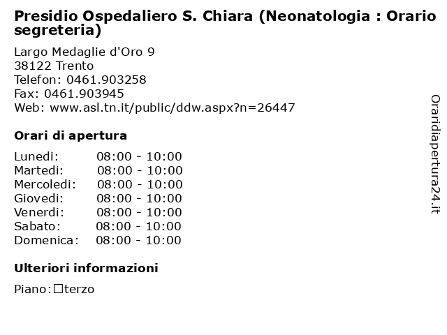 Tag di ricerca per Presidio Ospedaliero S. Chiara (Neonatologia : Orario segreteria):s., chiara, ospedale, orario, presidio, ospedaliero, segreteria), azienda ospedaliera, (neonatologia, direzione di ospedale, direzione medica |