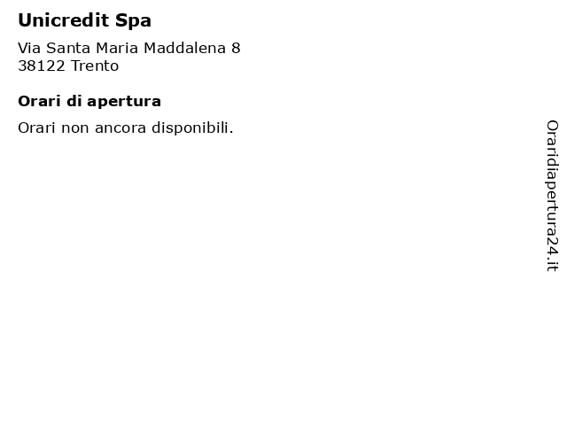 2 Unicredit (Bancomat) (distanza: 0,07 km) Via Galileo Galilei 1, 38122 Trento (bancomat), agenzie, banche, bancomat, soldi, unicredit 3 Unicredit (Bancomat) (distanza: 0,07 km) Via Galileo Galilei 1, 38122 Trento (bancomat), orari bancomat unicredit, unicredit, unicredit bancomat 4 Unicredit (Bancomat) (distanza: 0,41 km) Piazza Santa Maria Maggiore 1, 38122 Trento (bancomat), orari bancomat unicredit, unicredit, unicredit bancomat 5 Unicredit Banca (distanza: 2,96 km) Via Giovanni Battista Trener 16, 38121 Trento banca, credito, unicredit 6 Unicredit (Bancomat) (distanza: 4,38 km) Via Soprasasso, 14, 38121 Trento (bancomat), orari bancomat unicredit, unicredit, unicredit bancomat |