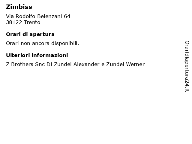 1 Mw Brothers Italy (distanza: 1,91 km) Via Lavisotto Snc, 38121 Trento attenzione, brothers, cappello, clienti, fabbrica, italy, mw 2 Two Brothers Snc Di Montibeller Andrea e Rossi Francois (distanza: 2,94 km) Localita' Tavernaro 36, 38121 Trento andrea, bar, birrerie, brothers, francois, montibeller, paninoteche, rossi, two 3 Z Brothers Snc Di Zundel Alexander e Zundel Werner (distanza: 4,84 km) Passo Del Cimirlo 86, 38123 Trento alexander, bar, birrerie, brothers, paninoteche, werner, zundel 4 Chaudhary Brothers Cash & Carry Srl (distanza: 20,84 km) Via Iv Novembre 69, 38030 Rovere' Della Luna brothers, carry, cash, chaudhary, supermercati 5 Brida Brothers (distanza: 39,21 km) Via Nazionale 77, 38020 Pellizzano brida, brothers, macelleria, ristomacelleria 6 Butt Brothers di Zubair Mohammad (distanza: 42,50 km) Via Garibaldi 32, 39100 Bolzano brothers, butt, mohammad, zubair |