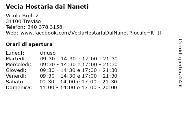 | Sabato | 09:30-14:00 e 17:00-21:30 |