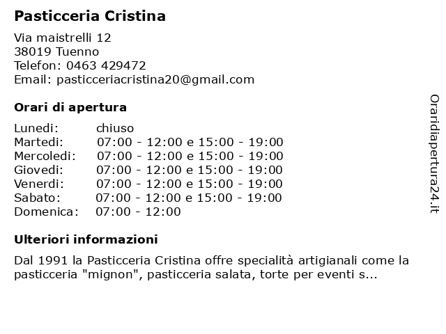 Martedi | 07:00-12:00 e 15:00-19:00 |