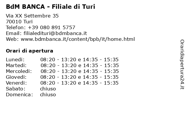 1 BdM BANCA - Filiale di Conversano (distanza: 10,06 km) Viale degli Eroi 2, 70014 Conversano banca, bdm, conversano, filiale 2 BdM BANCA - Filiale di Rutigliano (distanza: 10,55 km) Piazza XX Settembre 3, 70018 Rutigliano banca, bdm, filiale, rutigliano 3 BdM BANCA - Filiale di Putignano (distanza: 11,13 km) Corso Umberto I 45, 70017 Putignano banca, bdm, filiale, putignano 4 BdM Banca (distanza: 12,76 km) Piazza della Repubblica 10, 70013 Castellana Grotte banca, bdm, finanziamenti, prelievi, prestiti, versamenti 5 BdM BANCA - Filiale di Noicattaro (distanza: 13,36 km) Via Principe Umberto 7-9, 70016 Noicattaro banca, bdm, filiale, noicattaro 6 BdM BANCA - Filiale di Cellamare (distanza: 13,68 km) Piazza Risorgimento 32, 70010 Cellamare banca, bdm, cellamare, filiale |