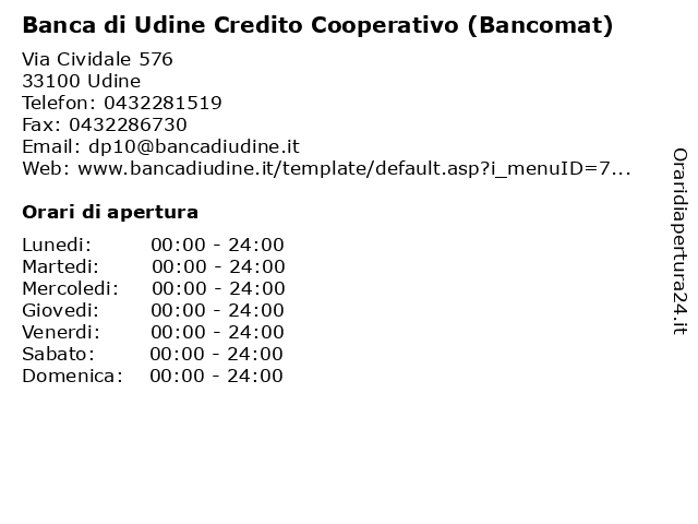 1 Banca di Udine Credito Cooperativo (distanza: 0,02 km) Via Cividale 576, 33100 Udine (UD) banca, conto corrente, cooperativo, credito, finanziamenti, mutuo, prestiti, risparmio, udine 2 CrediFriuli (Credito Cooperativo) (distanza: 1,76 km) Via Emilia 75, 33100 Beivars (credito, (credtito, assicurazioni, azioni, banca friuli, bancario, banche, banking, beni, business, card, casa, clienti, comuni, conto, contocorrente, cooperativo, cooperativo), credifriuli, credito 3 Banca di Udine Credito Cooperativo (distanza: 2,75 km) Via Zoletti 17, 33100 Udine (UD) banca, conto corrente, cooperativo, credito, finanziamenti, mutuo, prestiti, risparmio, udine 4 Aiuto al Credito (distanza: 3,05 km) Piazza del Duomo 3, 33100 Udine aiuto, avvocato, credito, legalservice 5 Banca di Udine Credito Cooperativo (Cassa Self Service) (distanza: 3,09 km) Piazza Belloni 3/4, 33100 Udine (cassa, banca, bancomat, contanti, cooperativo, credito, di, finanziamenti, mutui, prelievi, risparmi, self, service), soldi, udine 6 Banca di Udine Credito Cooperativo (distanza: 3,09 km) Piazza Belloni 4, 33100 Udine (UD) banca, conto corrente, cooperativo, credito, finanziamenti, mutuo, prestiti, risparmio, udine |