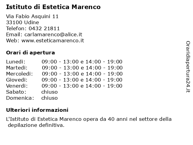 | Venerdi | 09:00-13:00 e 14:00-19:00 |