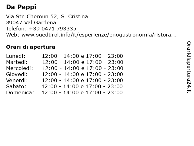 | Domenica | 12:00-14:00 e 17:00-23:00 |