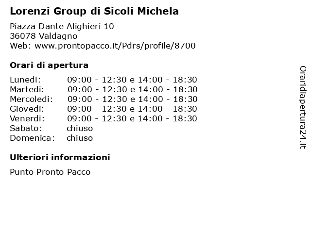 | Lunedi | 09:00-12:30 e 14:00-18:30 |