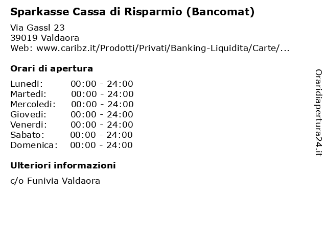 1 Sparkasse Cassa di Risparmio (Bancomat) (distanza: 2,45 km) Piazza Peter Sigmayr 2, 39030 Valdaora (bancomat), atm, bancomat, cassa, contanti, conto corrente, di, prelievi, ricariche telefoniche, risparmi, risparmio, sparkasse, versamenti 2 Sparkasse Cassa di Risparmio (Bancomat) (distanza: 6,02 km) Via Funivia 4, 39031 Riscone (bancomat), atm, bancomat, cassa, contanti, conto corrente, di, prelievi, ricariche telefoniche, risparmi, risparmio, sparkasse, versamenti 3 Sparkasse Cassa di Risparmio (Bancomat) (distanza: 7,74 km) Strada Plan de Corones 76, 39030 San Vigilio di Marebbe (bancomat), atm, bancomat, cassa, contanti, conto corrente, di, prelievi, ricariche telefoniche, risparmi, risparmio, sparkasse, versamenti 4 Sparkasse Cassa di Risparmio (Bancomat) (distanza: 7,81 km) Via Bastioni 21, 39031 Brunico (bancomat), atm, bancomat, cassa, contanti, conto corrente, di, prelievi, ricariche telefoniche, risparmi, risparmio, sparkasse, versamenti 5 Sparkasse Cassa di Risparmio (Bancomat) (distanza: 8,08 km) Via Catarina Lanz 10, 39030 San Vigilio di Marebbe (bancomat), atm, bancomat, cassa, contanti, conto corrente, di, prelievi, ricariche telefoniche, risparmi, risparmio, sparkasse, versamenti 6 Sparkasse Cassa di Risparmio (Bancomat) (distanza: 8,72 km) Via Brunico 21/A, 39030 San Lorenzo (bancomat), atm, bancomat, cassa, contanti, conto corrente, di, prelievi, ricariche telefoniche, risparmi, risparmio, sparkasse, versamenti |
