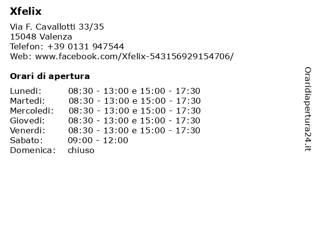 | Venerdi | 08:30-13:00 e 15:00-17:30 |