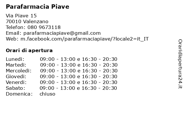 | Sabato | 09:00-13:00 e 16:30-20:30 |