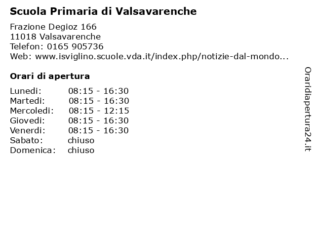 1 Scuola dell'Infanzia di Valsavarenche (distanza: 0,06 km) Località Dégioz 166, 11018 Valsavarenche asilo, dell'infanzia, di, dirigente scolastico, elementari, infanzia, istituto comprensivo, istruzione, lezioni, liceo, medie, primaria, scuola, scuola dell'infanzia, scuola elementare, scuola materna, scuola media, scuola paritaria, scuole, valsavarenche 2 Istututo Musicale Pareggiato - segreteria (distanza: 4,96 km) Via Guido Rey snc8, 11010 Aosta istruzione, istututo, musicale, pareggiato, scuola, segreteria 3 Scuola Primaria di Rhêmes-Saint-Georges (distanza: 8,28 km) Località Coveyrand 20, 11018 Rhêmes-Saint-Georges asilo, di, dirigente scolastico, elementari, georges, infanzia, istituto comprensivo, istruzione, lezioni, liceo, medie, primaria, rhêmes, saint, scuola, scuola dell'infanzia, scuola elementare, scuola materna, scuola media, scuole 4 Scuola dell'Infanzia di Introd (distanza: 11,08 km) Frazione Plan d'Introd 5, 11018 Introd asilo, dell'infanzia, di, dirigente scolastico, elementari, infanzia, introd, istituto comprensivo, istruzione, lezioni, liceo, medie, primaria, scuola, scuola dell'infanzia, scuola elementare, scuola materna, scuola media, scuola paritaria, scuole 5 Scuola Primaria di Introd (distanza: 11,08 km) Località Plan d'Introd 5, 11018 Introd asilo, di, dirigente scolastico, elementari, infanzia, introd, istituto comprensivo, istruzione, lezioni, liceo, medie, primaria, scuola, scuola dell'infanzia, scuola elementare, scuola materna, scuola media, scuola paritaria, scuola primaria, scuole 6 Scuola Primaria di Cogne (distanza: 11,62 km) Via Bourgeois 28, 11018 Cogne asilo, cogne, di, dirigente scolastico, elementari, infanzia, istituto comprensivo, istruzione, lezioni, liceo, medie, primaria, scuola, scuola dell'infanzia, scuola elementare, scuola materna, scuola media, scuola paritaria, scuola primaria, scuole |