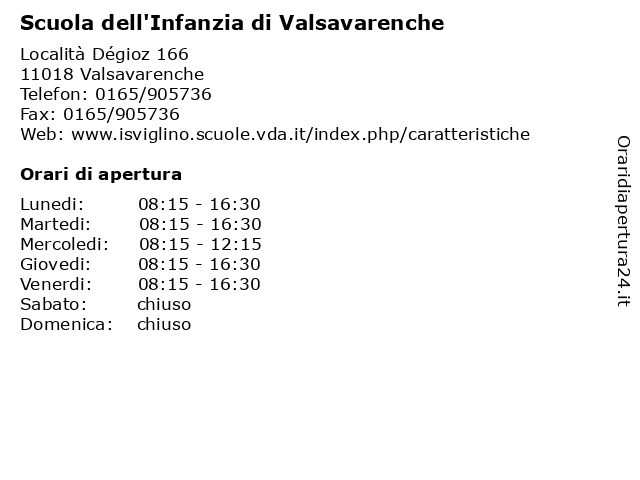 1 Scuola Primaria di Valsavarenche (distanza: 0,06 km) Frazione Degioz 166, 11018 Valsavarenche asilo, di, dirigente scolastico, elementari, infanzia, istituto comprensivo, istruzione, lezioni, liceo, medie, primaria, scuola, scuola dell'infanzia, scuola elementare, scuola materna, scuola media, scuola paritaria, scuola primaria, scuole, valsavarenche 2 Istututo Musicale Pareggiato - segreteria (distanza: 5,01 km) Via Guido Rey snc8, 11010 Aosta istruzione, istututo, musicale, pareggiato, scuola, segreteria 3 Scuola Primaria di Rhêmes-Saint-Georges (distanza: 8,30 km) Località Coveyrand 20, 11018 Rhêmes-Saint-Georges asilo, di, dirigente scolastico, elementari, georges, infanzia, istituto comprensivo, istruzione, lezioni, liceo, medie, primaria, rhêmes, saint, scuola, scuola dell'infanzia, scuola elementare, scuola materna, scuola media, scuole 4 Scuola dell'Infanzia di Introd (distanza: 11,08 km) Frazione Plan d'Introd 5, 11018 Introd asilo, dell'infanzia, di, dirigente scolastico, elementari, infanzia, introd, istituto comprensivo, istruzione, lezioni, liceo, medie, primaria, scuola, scuola dell'infanzia, scuola elementare, scuola materna, scuola media, scuola paritaria, scuole 5 Scuola Primaria di Introd (distanza: 11,08 km) Località Plan d'Introd 5, 11018 Introd asilo, di, dirigente scolastico, elementari, infanzia, introd, istituto comprensivo, istruzione, lezioni, liceo, medie, primaria, scuola, scuola dell'infanzia, scuola elementare, scuola materna, scuola media, scuola paritaria, scuola primaria, scuole 6 Scuola Primaria di Cogne (distanza: 11,56 km) Via Bourgeois 28, 11018 Cogne asilo, cogne, di, dirigente scolastico, elementari, infanzia, istituto comprensivo, istruzione, lezioni, liceo, medie, primaria, scuola, scuola dell'infanzia, scuola elementare, scuola materna, scuola media, scuola paritaria, scuola primaria, scuole |