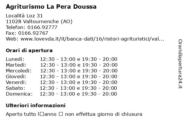| Domenica | 12:30-13:00 e 19:30-20:00 |