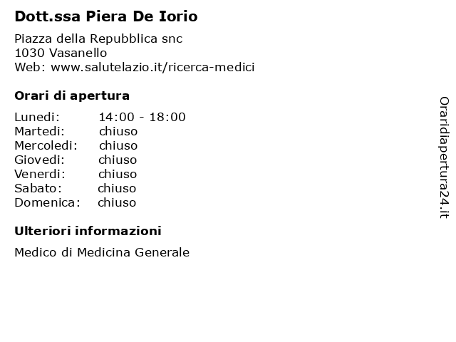 1 Dott.ssa Piera De Iorio (distanza: 6,89 km) Largo Tronsarelli 39, 01035 Gallese (VT) ambulatorio, cura della persona, de, dott.ssa, iorio, medicina, medico, piera, prevenzione, salute 2 Paulette s.a.s. Di Albalustro Paola Piera & c. (distanza: 6,44 km) Via San Giuseppe s. n. c., 01030 Bassano In Teverina affitto, albalustro, immob, paola, paulette, piera, propriet 3 La Miniera Di Iorio Monia (distanza: 8,46 km) Via Civita Castellana 57, 01030 Corchiano catering, iorio, miniera, monia, ristoranti 4 Scarponi Piera (distanza: 13,86 km) Via Dello Stabilimento 1, 05035 Narni bar, birrerie, paninoteche, piera, scarponi 5 Calcinari Piera (distanza: 14,35 km) Piazza Della Liberazione 6/7, 01033 Civita Castellana abbigl, calcinari, comm, dett, genere, piera 6 A Casa di Piera (distanza: 38,35 km) Via Provinciale Capena 21, 00060 Capena bomboniere, casa, di, matrimoni, piera |