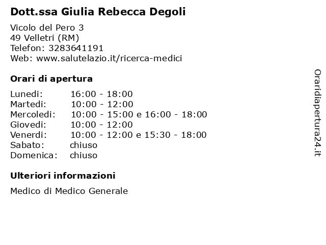 | Venerdi | 10:00-12:00 e 15:30-18:00 |