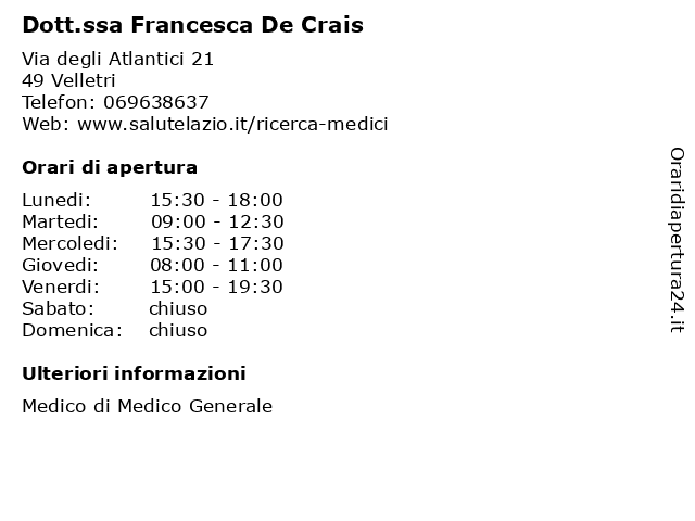 Tag di ricerca per Dott.ssa Francesca De Crais:medicina, sanità, de, ambulatori, medici, cura della persona, analisi, dott.ssa, francesca, cure, visite mediche, crais |