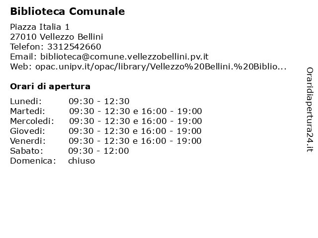 | Martedi | 09:30-12:30 e 16:00-19:00 |