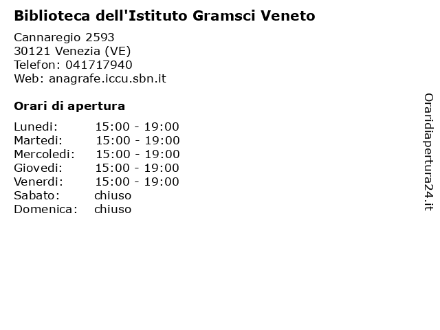 | Venerdi | 15:00-19:00 |
