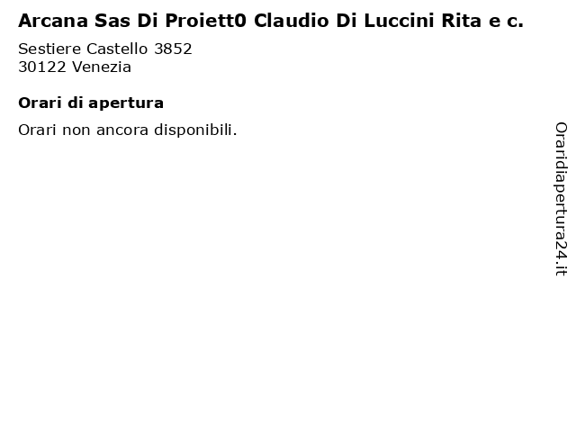 1 Arcana Sas Di Proiett0 Claudio Di Luccini Rita e c. (distanza: 0,00 km) Sestiere Castello 3850, 30122 Venezia arcana, catering, claudio, luccini, proiett0, ristoranti, rita 2 Arcana Sas Di Proiett0 Claudio Di Luccini Rita e c. (distanza: 1,15 km) Sestiere Castello 3849, 30122 Venezia arcana, catering, claudio, luccini, proiett0, ristoranti, rita 3 Dott. Di Leo Rita (distanza: 1,31 km) Via Castello 6777, 30122 Venezia ambulatorio, assistenza, cure mediche, di, dott., leo, rita, sanità, servizi ai cittadini 4 Anticlea Di Turchetto Rita (distanza: 1,35 km) Sestiere Castello 4719/a, 30122 Venezia anticlea, articoli, comm, dett, rita, turchetto, vari 5 Tabaccheria Baradel Rita Roberta (distanza: 11,98 km) Via Trento 25/a, 30171 Venezia baradel, rita, roberta, tabaccai, tabaccheria 6 Dott. Napolitano Rita (distanza: 13,06 km) Via Paccagnella 11, 30174 Mestre ambulatorio, assistenza, cure mediche, dott., napolitano, rita, sanità, servizi ai cittadini |