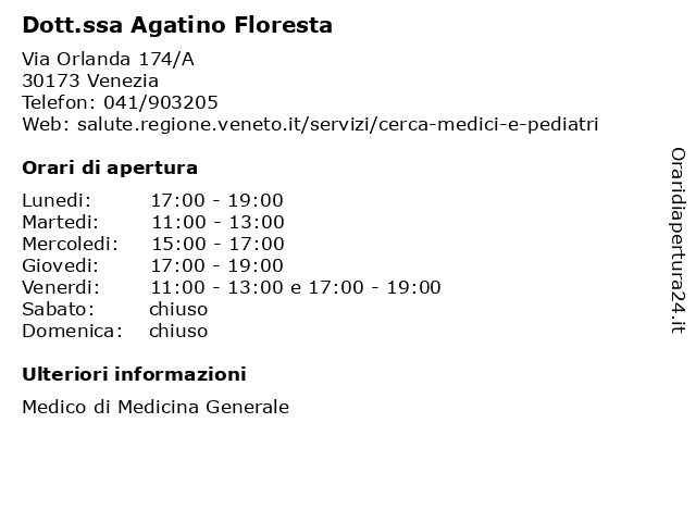 1 Dott. Floresta Agatino (distanza: 0,74 km) Via Bagaron 7/B, 30174 Venezia agatino, ambulatorio, cure, diagnosi, dott., dottore, floresta, prescrizione farmaci, visite mediche 2 Dott. Agatino Floresta (distanza: 5,43 km) Via Oslavia 44, 30171 Venezia agatino, ambulatorio, azienda, dott., floresta, medico, sanitaria, visita 3 An.El.Gi. Sas Di Agatino Briguglio & c. (distanza: 18,93 km) Piazzetta Del Grano 5, 30033 Noale agatino, briguglio, el, gestione, immob, industriali, locaz 4 Simoncello Associati-ingegneria e Architettura (distanza: 4,65 km) Via Temanza Tommaso 1, 30174 Venezia architettura, associati, ingegneria, simoncello, studio di ingegneria 5 Mirabella Agatino (distanza: 34,60 km) Vicolo San Giacomo 27 Int 1, 35020 Albignasego agatino, coloniali, drogherie, mirabella 6 Medicina e Salute (Dott. Agatino Vinciguerra) (distanza: 43,59 km) Via San Giuseppe 38H, 31015 Conegliano (dott., agatino, ambulatorio analisi, analisi, laboratorio, medicina, poliambulatorio, prelievi, salute, vinciguerra) |