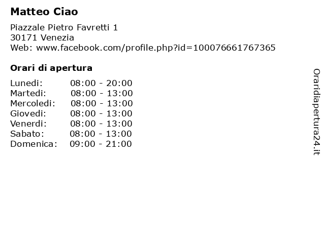 1 Teomax Snc Di Vascellari Massimo Matteo Nicola & Co. (distanza: 0,15 km) Via Piave 204, 30172 Venezia gioiellerie, massimo, matteo, nicola, teomax, vascellari 2 Zanchet & c. s.n.c. Di Zanchet Alfonso, Matteo e Marcello (distanza: 0,40 km) Via Sernaglia 27, 30171 Venezia alfonso, bar, birrerie, marcello, matteo, paninoteche, zanchet 3 Avvocato Zambelli Matteo (distanza: 0,53 km) Via Cavallotti 22, 30170 Venezia Mestre (VE) appuntamenti, avvocati, avvocato, difensori, leggi, matteo, zambelli 4 Avvocato Riovanto Matteo (distanza: 0,83 km) Via Bembo 40, 30172 Venezia -Mestre (VE) appuntamenti, avvocati, avvocato, difensori, leggi, matteo, riovanto 5 Caritas del Patriarcato di Venezia (Sostegno al credito S. Matteo - Sede di Mestre) (distanza: 1,02 km) Via Querini 19/A, 30173 Mestre (sostegno, al, arcidiocesi, caritas, chiesa, chiese, credito, del, di, diocesi, matteo, mestre), parrocchie, patriarcato, s., sede, servizi pastorali, venezia 6 Avvocato D'Angelo Matteo (distanza: 1,24 km) Corso Del Popolo 67, 30172 Mestre (VE) appuntamenti, avvocati, avvocato, d'angelo, difensori, leggi, matteo |