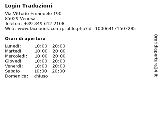 | Venerdi | 10:00-20:00 |