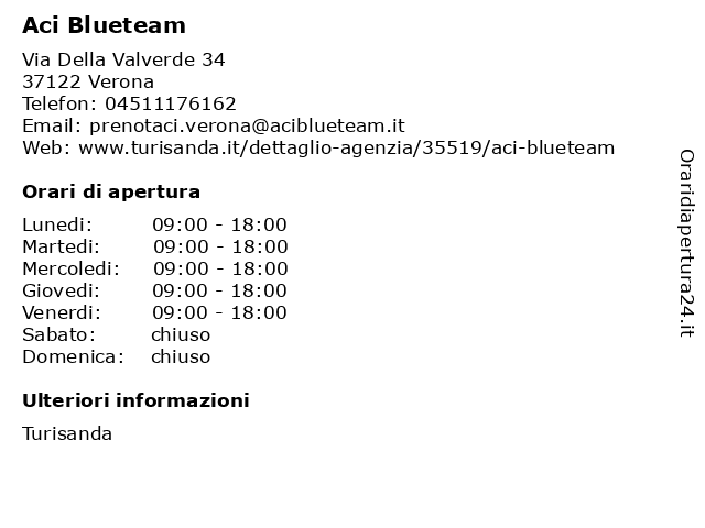 1 Aci Automobile Club (distanza: 0,01 km) Via della Valverde 34, 37122 Verona aci, auto, automobile, club, tasse 2 Automobile Club Verona Aci (distanza: 0,02 km) Via della valverde 34, 37122 Verona aci, automobile, club, consulente assicurativo, motorizzazione civile, verona 3 ACI - SERVIZIO URP (distanza: 1,67 km) VIA BOZZINI 2, 37134 VERONA (VR) (automobile, aci, aci global, aiuto, assistenza, assistenza accessori, assistenza bollo, assistenza medico-sanitaria, auto, auto sostitutiva, bollo, bollo sicuro, camper, club, d'italia), driving, estero, servizi, servizio, urp 4 ACI - SERVIZIO PRA (distanza: 1,67 km) VIA BOZZINI 2, 37134 VERONA (VR) (automobile, aci, aci global, aiuto, assistenza, assistenza accessori, assistenza bollo, assistenza medico-sanitaria, auto, auto sostitutiva, bollo, bollo sicuro, camper, club, d'italia), driving, estero, pra, servizi, servizio 6 ACI Automobile Club d'Italia (distanza: 2,76 km) Via Meloni 1/A, 37138 Verona aci, auto, automobile, club, d'italia, tasse |