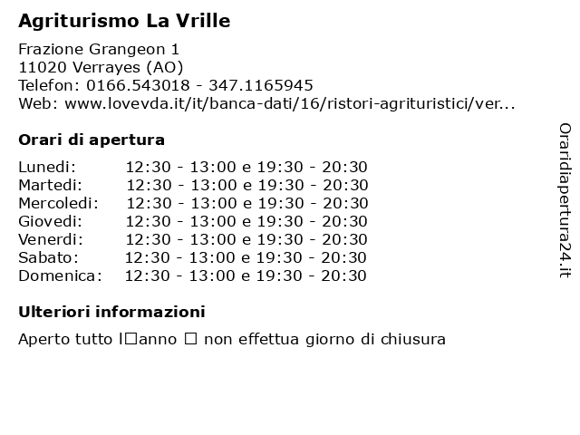 | Domenica | 12:30-13:00 e 19:30-20:30 |