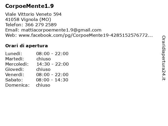 1 Corpo e Mente Di Corni Luigi & C SNC (distanza: 0,60 km) Viale Vittorio Veneto 46, 41058 Vignola corni, corpo, luigi, mente 2 Torna in Forma in modo Naturale con Linda (distanza: 4,37 km) Via Provinciale Vignola 931, 41057 Spilamberto (MO) alimentazione, benessere, con, corpo, dieta, esercizio, estate, fisico, fitness, forma, in, linda, mente, modo, naturale, nutrizione, palestra, positività, sanità, torna 3 4 Samurai Dojo Castelfranco Emilia Go Ju Italia Jujitsu (distanza: 15,58 km) Via Antonio Predieri, s.n.c, 41010 Castelfranco Dell' Emilia (MO) allenamento, arti, castelfranco, centro, corpo, cuore, disciplina, dojo, emilia, go, italia, ju, jujitsu, marziali, mente, oriente, palestra, samurai, sport, squadra 5 Oriente in Movimento (distanza: 19,26 km) Vicolo Pascoli 1, 40069 Zola Predosa gruppo, in, libero, movimento, oriente, serviz, sport, tempo 6 Pizzeria Il Braccio & La Mente Di Nasta Bartolomeo (distanza: 19,99 km) Via Nonantolana 488, 41122 Modena bartolomeo, braccio, catering, mente, nasta, pizzeria, ristoranti |
