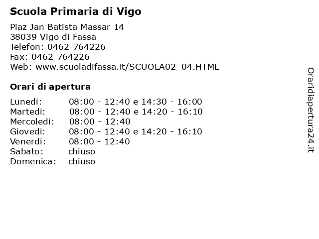 | Lunedi | 08:00-12:40 e 14:30-16:00 |