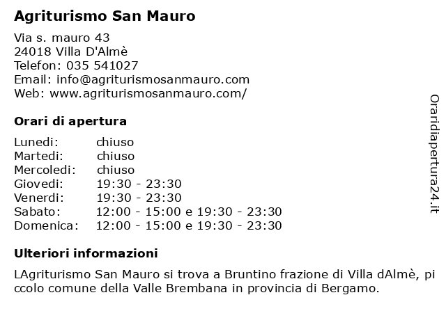 | Domenica | 12:00-15:00 e 19:30-23:30 |